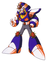 Punk Punk has entered the tournament! He's back with a vengeance and he's not going to let Mega Man punk him this time! With his new arsenal, it's sure to be a quick defeat for anyone standing in his way. Main Weapon: Screw Crusher Weakness: Mirror Buster Ineffective: None Techniques and other tools PUNK JUMP: Punk can jump an above average height SCREW CRUSHER: Punk can jump an above average height PUNK PUNCH: Punk can extended his arm to deliver a powerful punch PUNK SLIDE: Punk can perform a quick slide to evade enemies PUNK SPIKES: Punk can shoot the spikes on his shoulders at enemies PUNK ROLLER: Punk can transform himself into a rolling ball of spikes |