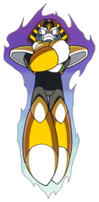 Tengu Man Tengu Man has entered the tournament! There's no enemy he's afraid to take on. He knows he's number one and he doesn't need to prove anything. Main Weapon: Tornado Hold and Tengu Blade Weakness: Ice Wave and Spread Drill Ineffective: None Techniques and other tools TENGU JUMP: Tengu Man can jump an average height TENGU HOVER: Tengu Man can hover in midair TENGU BLADE: Tengu Man can unleash a slicing blade of air YAMA ARASHI: Tengu Man can unleash a damaging whirlwind capable of carrying enemies away TORNADO HOLD: Tengu Man can deploy a weapon that creates a tornado that traps enemies TENCROW: Tengu Man can summon mechanloid crows to attack TENGU DIVE: Tengu Man can transform into a jet to attack at high speed |